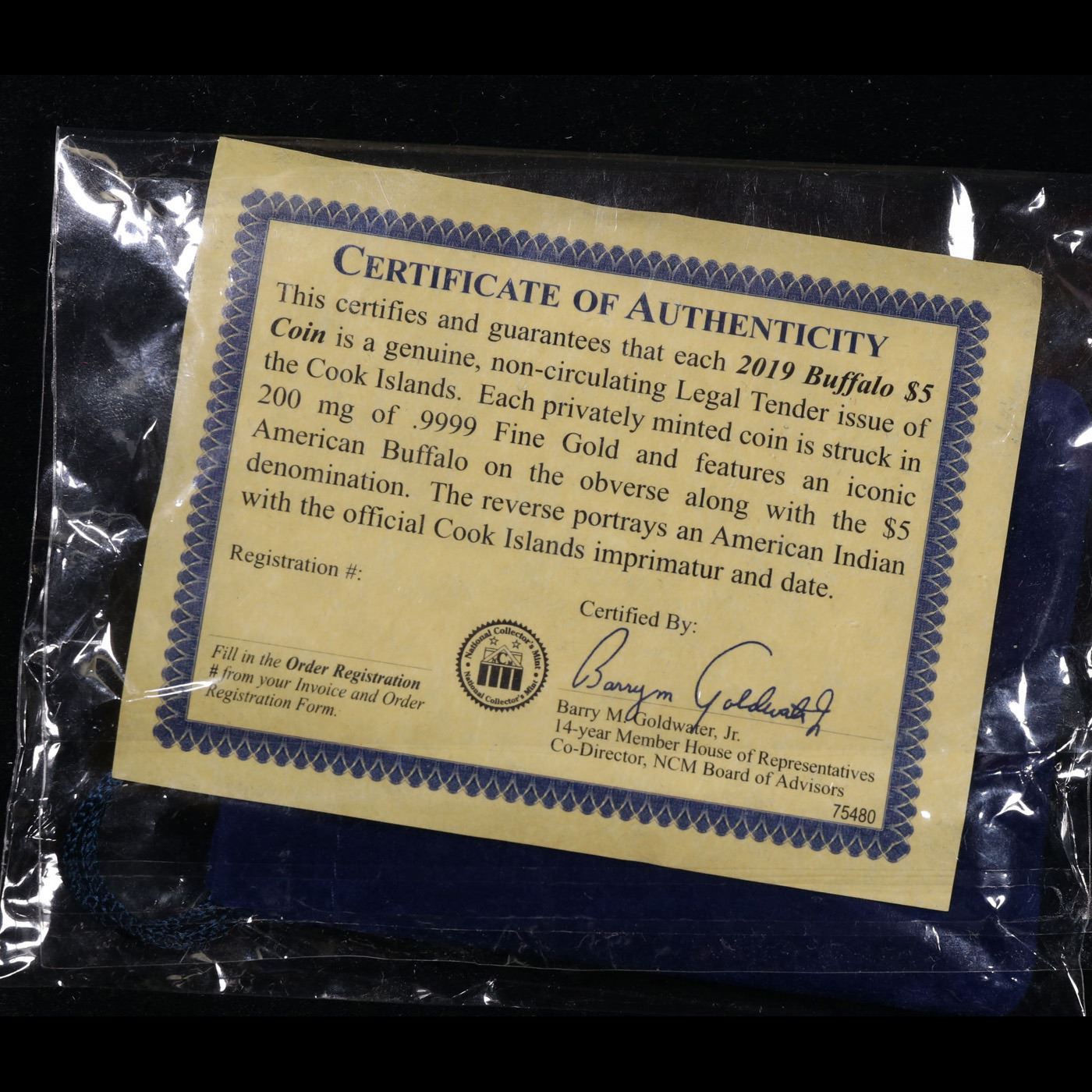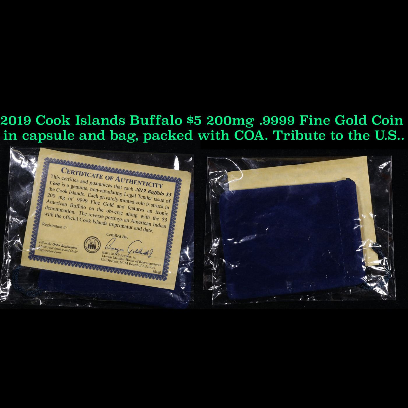2019 Cook Islands Buffalo $5 200mg .9999 Fine Gold Coin in capsule and bag, packed with COA. Tribute to the U.S..