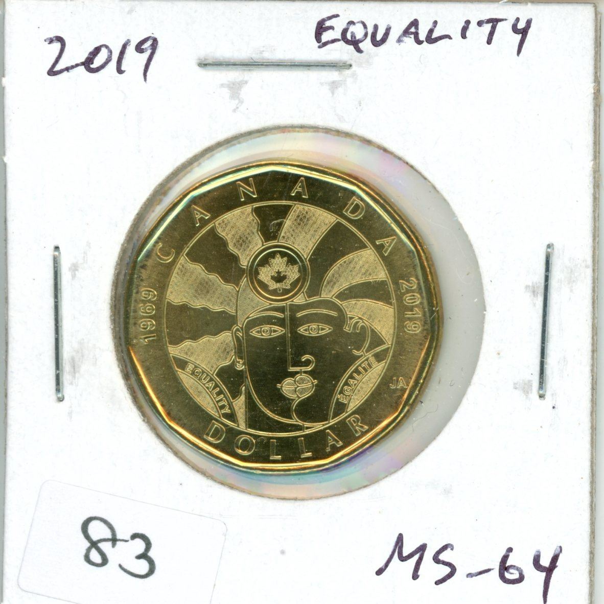 2019 Equality Loonie. 50th Anniversary of the decriminalization of homosexuality. MS-64.