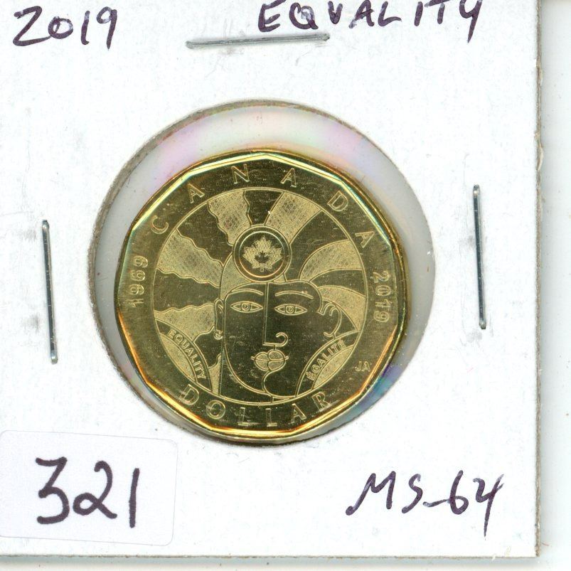2019 Equality Loonie Dollar. Commemorates the 50th Anniversary of the decriminalization of homosexuality. MS-64 from an original roll.