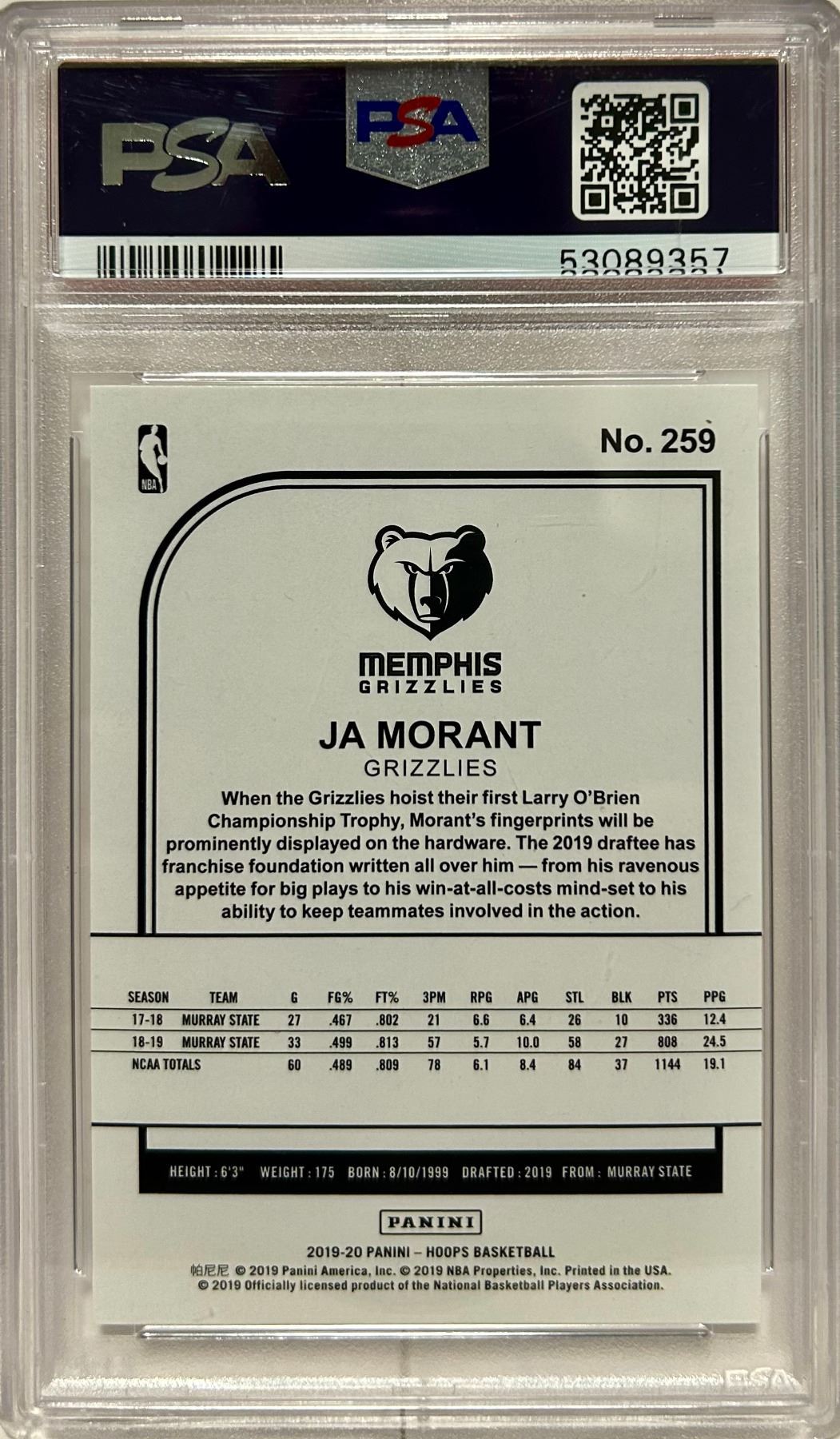 2019 Panini Hoops Ja Morant RC #259