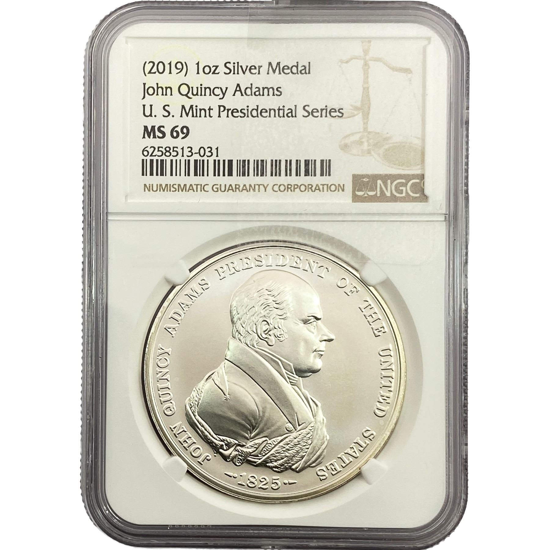 2019 John Quincy Adams 1oz Silver Medal NGC MS69