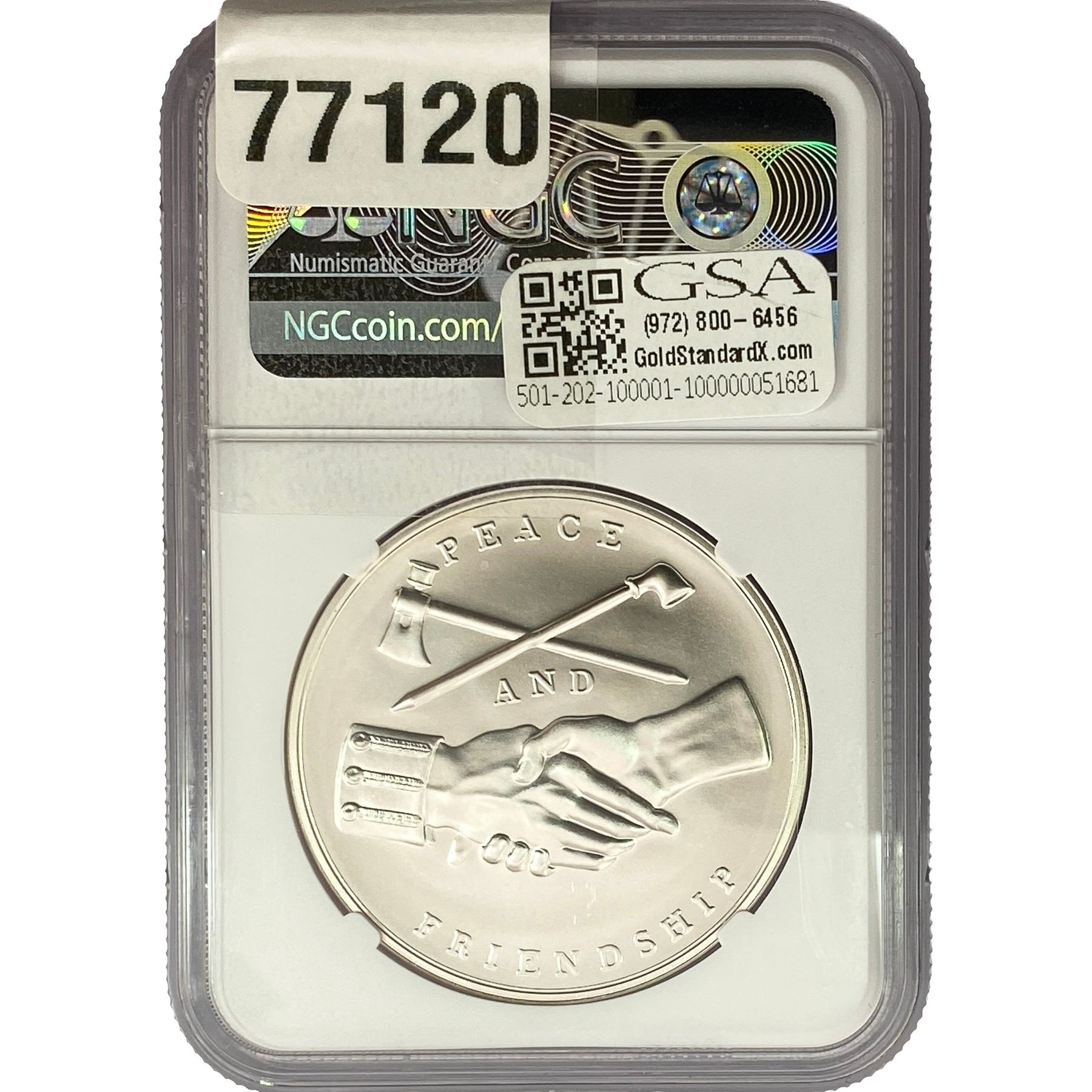 e. Coins sold referencing a third-party grading service are sold “AS IS” without any express or implied warranty, except for a guarantee by GSA that they are genuine. Removal or alteration of the holder, voids all of Bidder’s claims concerning that Product. Certain warranties may be available from the grading services and Bidders are referred to them for further details: Numismatic Guaranty Corporation (NGC), PO Box 4776, Sarasota, FL 34230, www.ngccoin.com/services/writtenguarantee.asp; Professional Coin Grading Services (PCGS), PO Box 9458, Newport Beach, CA 92658, www.pcgs.com/guarantee.html; ANACS, 6555 S. Kenton St., Ste. 303, Englewood, CO 80111; and Independent Coin Grading Co. (ICG), 7901 East Bellview, Ave., Suite 50, Englewood, CO 80111.
