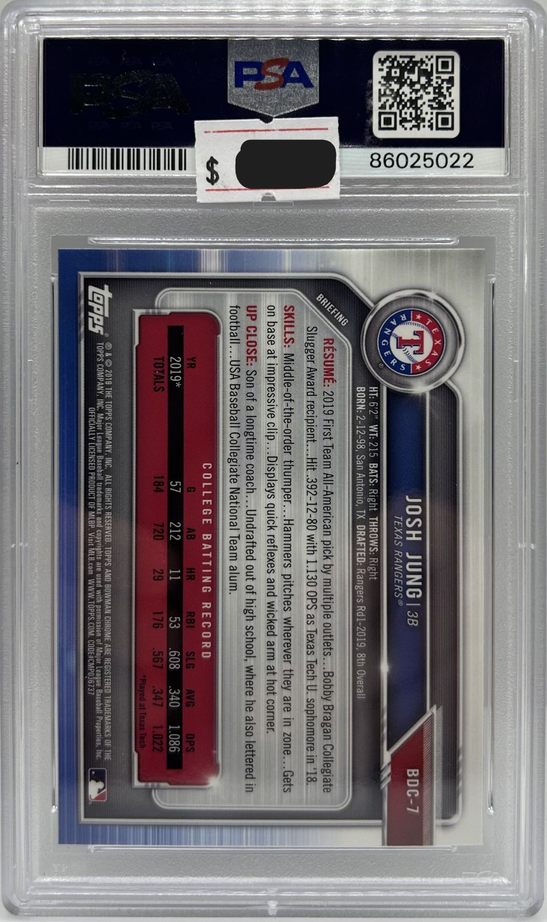 2019 Bowman Chrome Josh Jung #BDC7