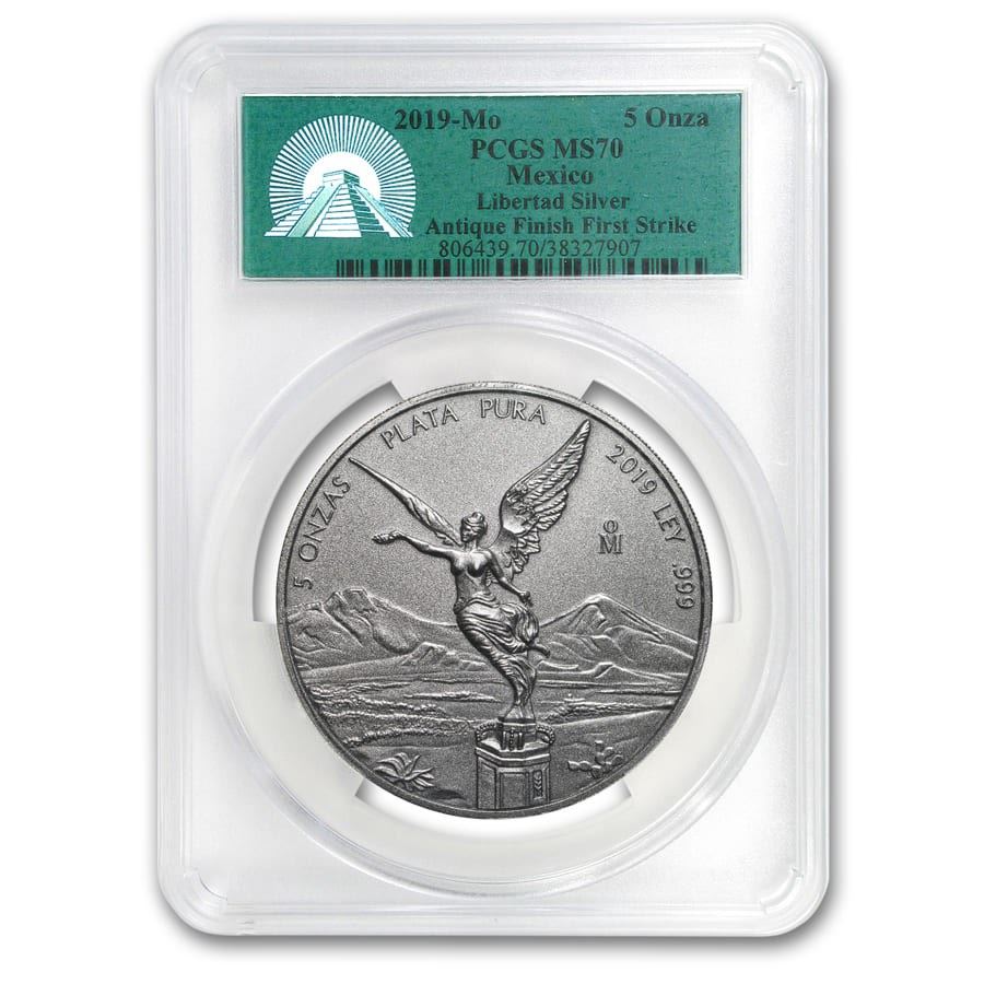 2019 Mexico 5 oz Silver Libertad Antiqued Finish MS-70 PCGS (FS)