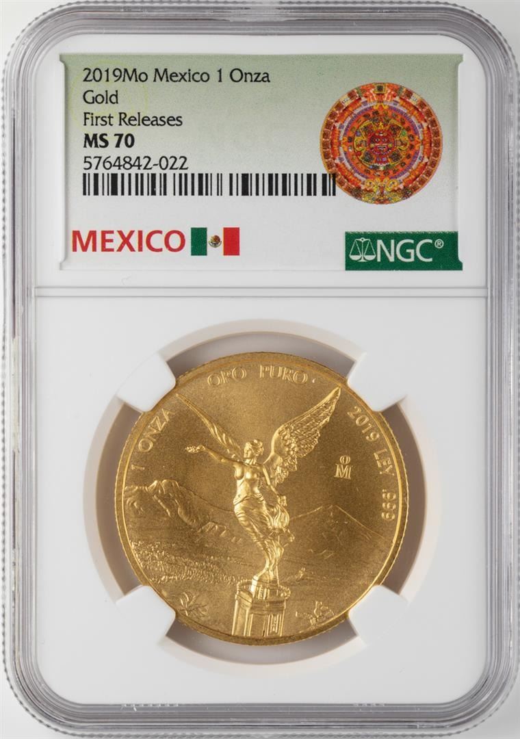 One 2019 Mo Mexico Libertad 1 Onza Gold Coin NGC MS70 First Releases. NGC Certified.