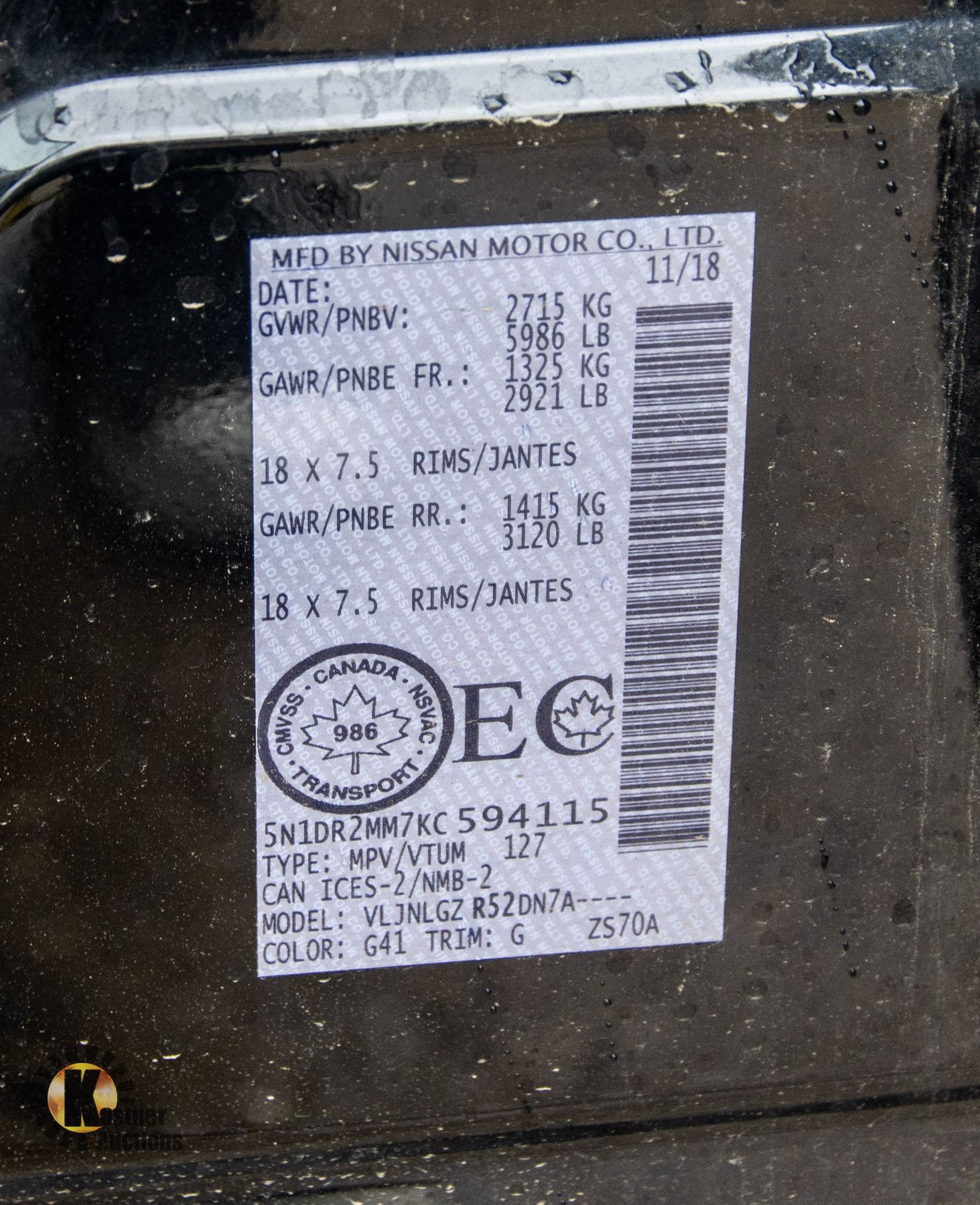 VIN: 5N1DR2MM7KC594115