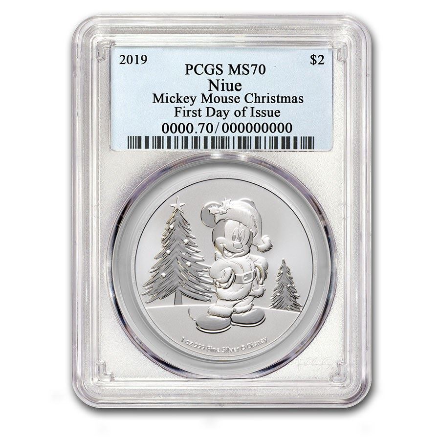 2019 Niue 1 oz Silver $2 Disney Mickey Christmas MS-70 PCGS (FD)