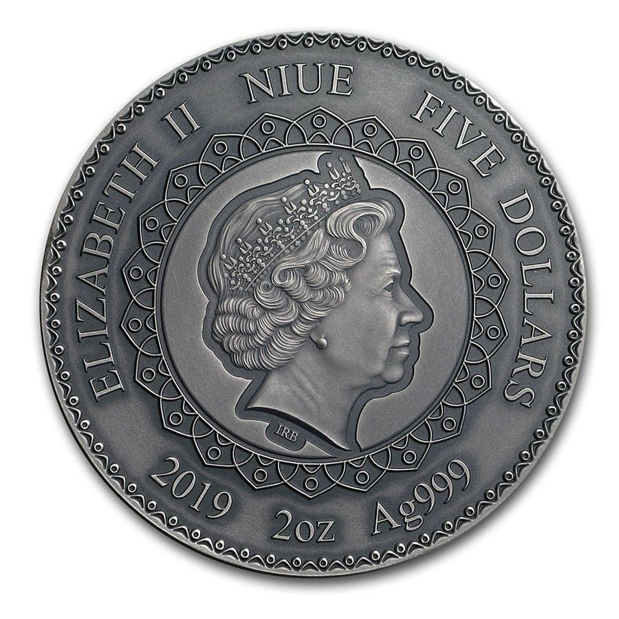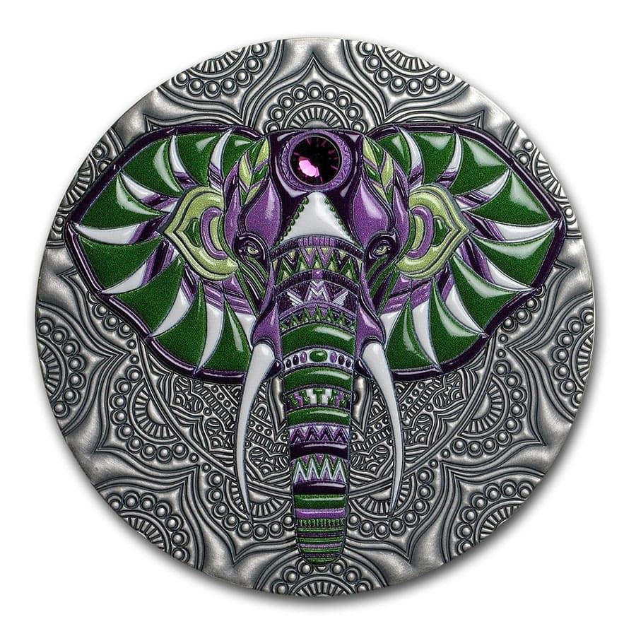 2019 Niue 2 oz Antique Silver Mandala Collection: Elephant