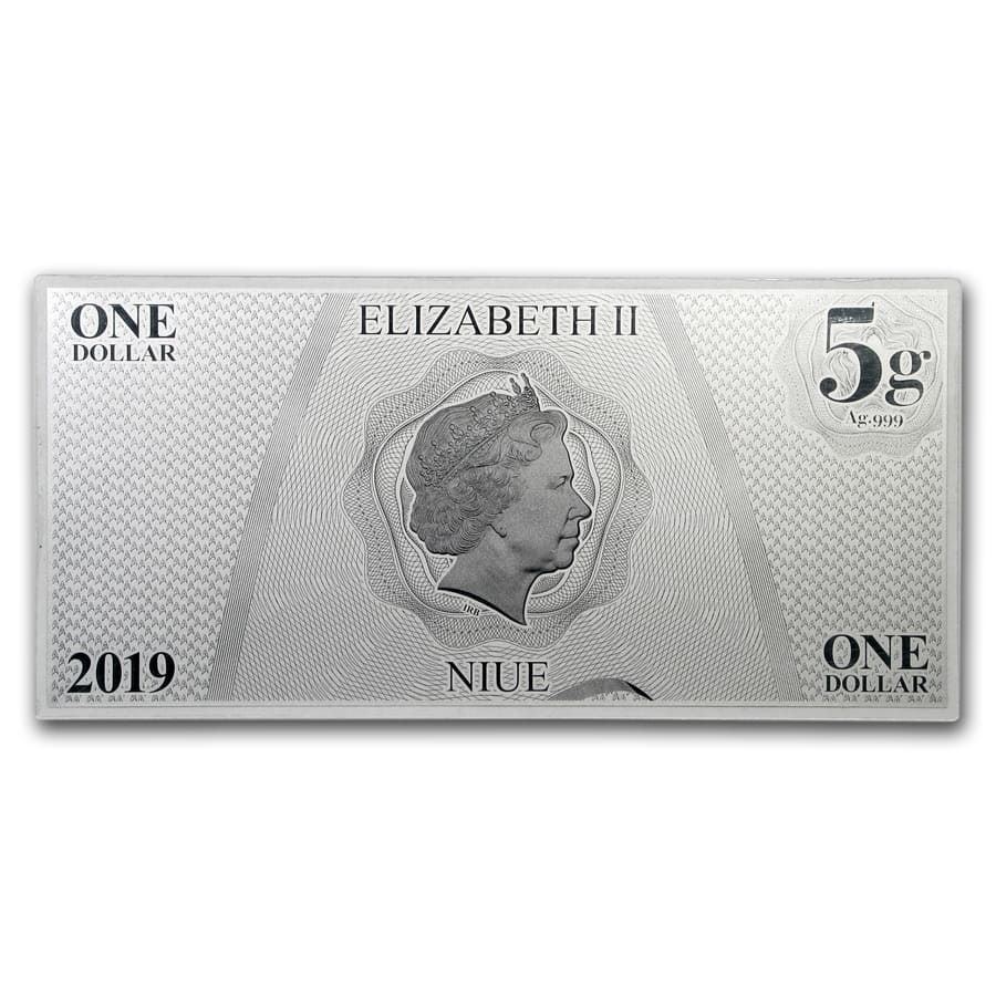 2019 Niue 5 gram Silver $1 Note Star Trek Data