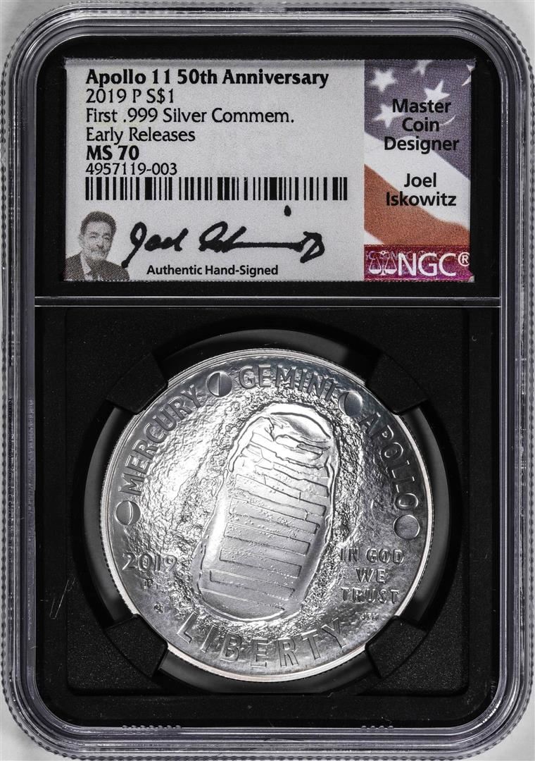 2019-P $1 Apollo 11 Commemorative Silver Dollar Coin NGC MS70 ER Iskowitz Signature