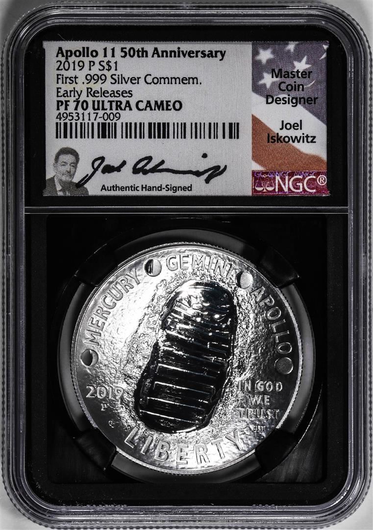 One 2019-P $1 Proof Apollo 11 Commemorative Silver Dollar Coin NGC PF70 UC Iskowitz Signed. NGC Certified.