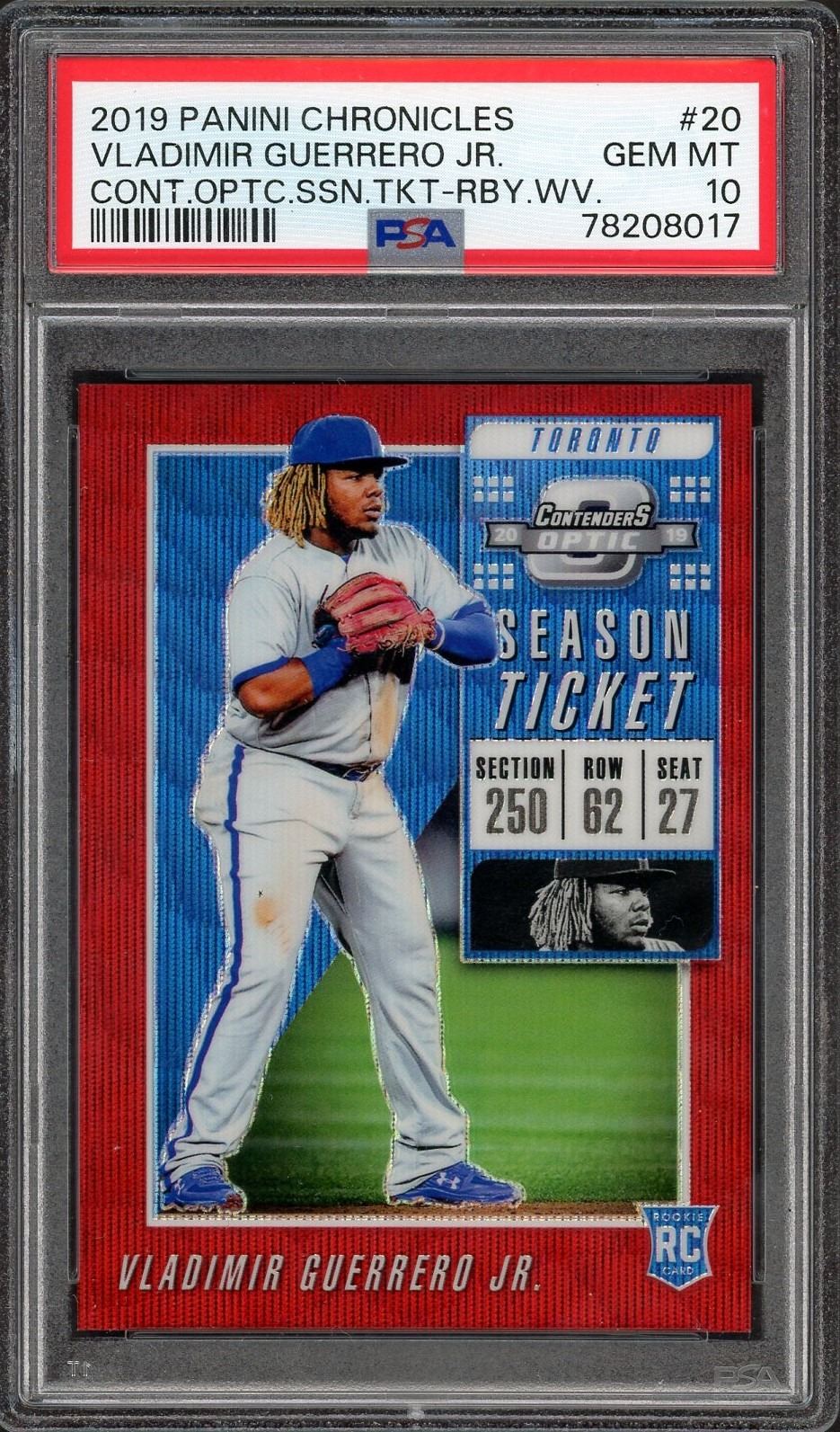 2019 Panini Chronicles Contenders Optic Season Ticket Ruby Red Wave #'d to 199 rookie of Blue Jays star Vladimir Guerrero Jr graded a gem mint 10 by PSA!