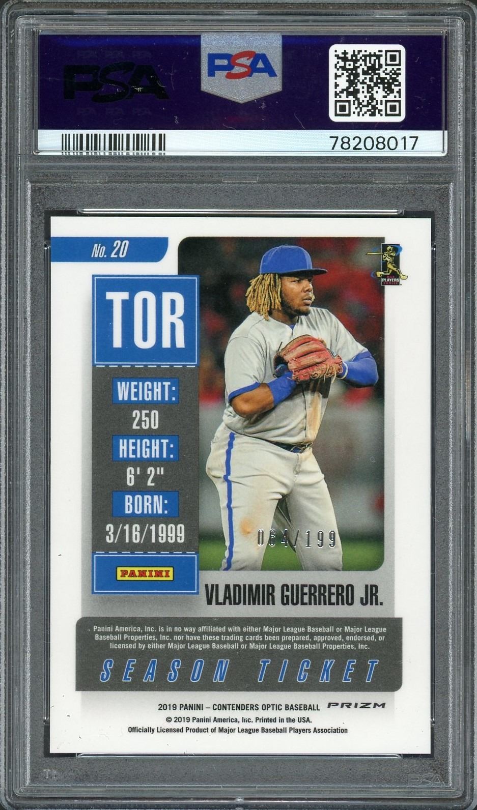 2019 Panini Chronicles Ruby Wave Season Ticket rookie of Blue Jays star Vladimir Guerrero Jr graded a gem mint 10 by PSA!