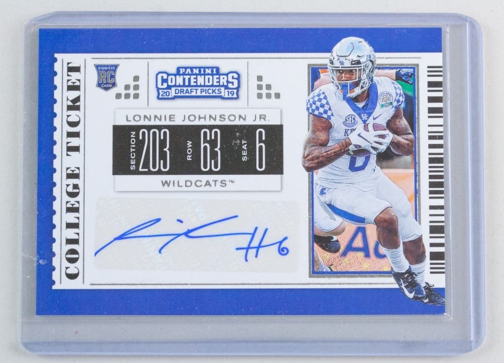 American football college ticket. Featuring Lonnie Johnson Jr. Signed. No. 309. Player information on the back. 6.5 x 9 cm.