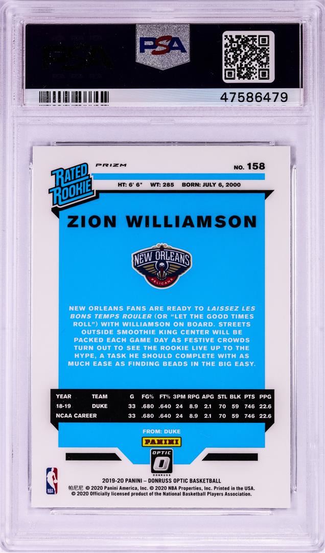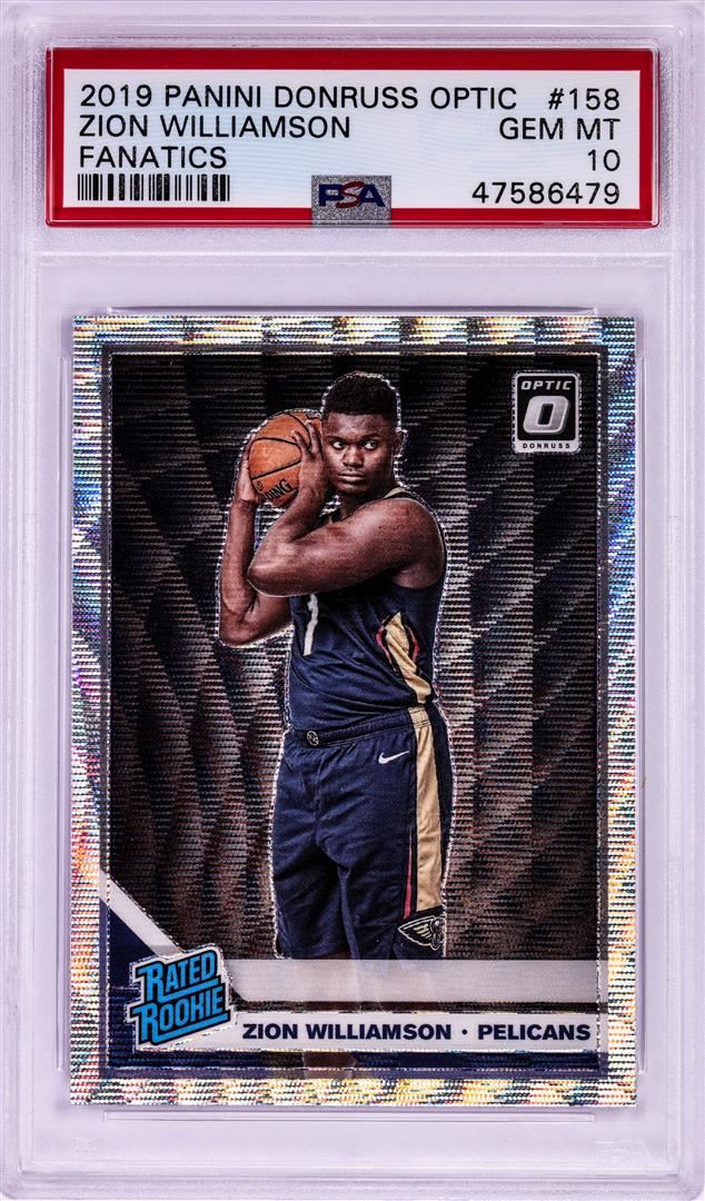One 2019 Panini Donruss Optic Fanatics Zion Williamson NBA Card #158 PSA Gem Mint 10. PSA Certified.