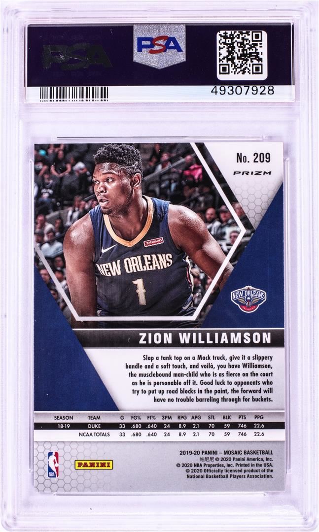 One 2019 Panini Mosaic Pink Camo Zion Williamson NBA Card #209 PSA Mint 9. PSA Certified.