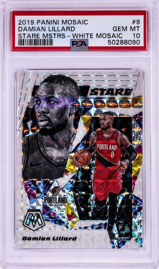 One 2019 Panini Mosaic Stare Masters White Damian Lillard NBA Card #9 PSA Gem Mint 10. PSA Certified.