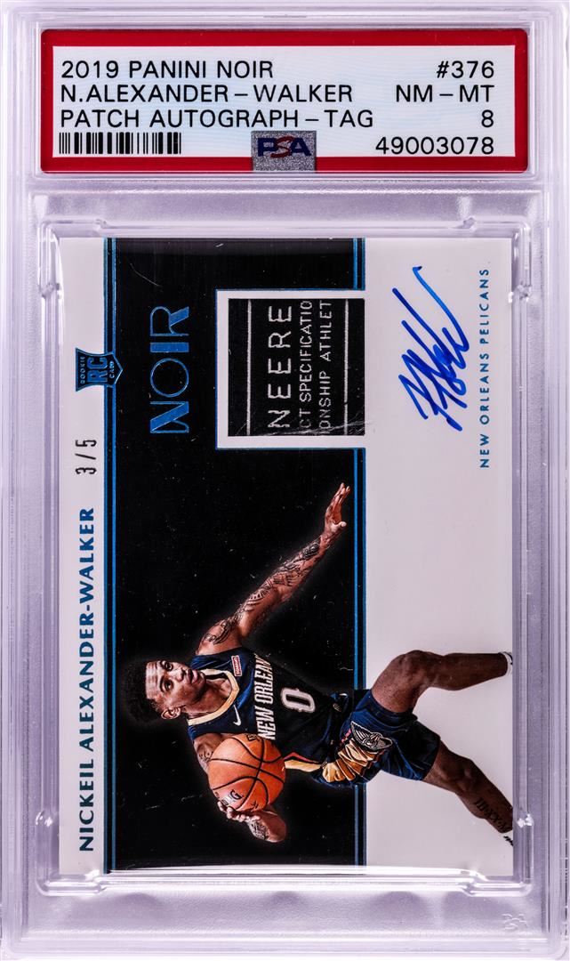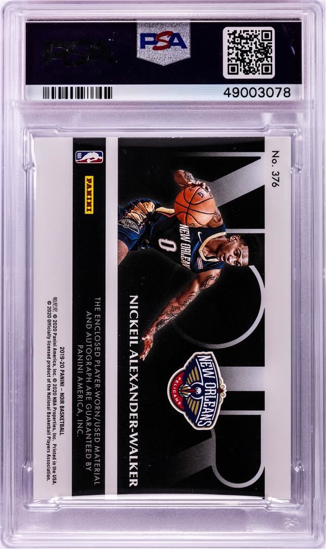 One 2019 Panini Noir RPA Laundry Tag Nickeil Alexander-Walker NBA Card #376 PSA Near Mint 8. PSA Certified.