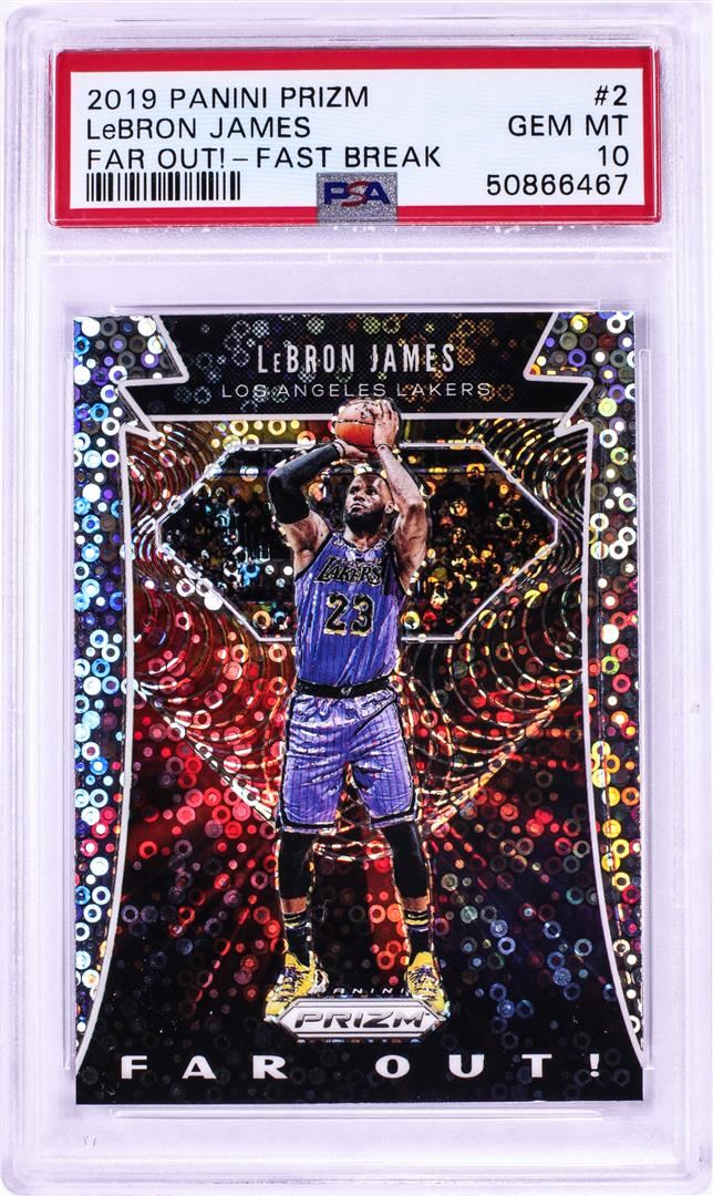 One 2019 Panini Prizm Far Out Fast Break LeBron James NBA Card #2 PSA Gem Mint 10. PSA Certified.