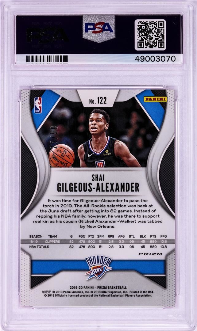 One 2019 Panini Prizm Fast Break Pink Shai Gilgeous-Alexander NBA Card #122 PSA Gem Mint 10. PSA Certified.