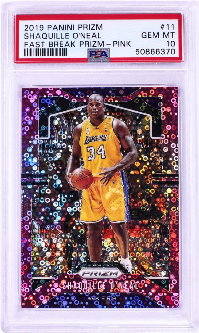 One 2019 Panini Prizm Fast Break Pink Shaquille O'Neal NBA Card #11 PSA Gem Mint 10. PSA Certified.