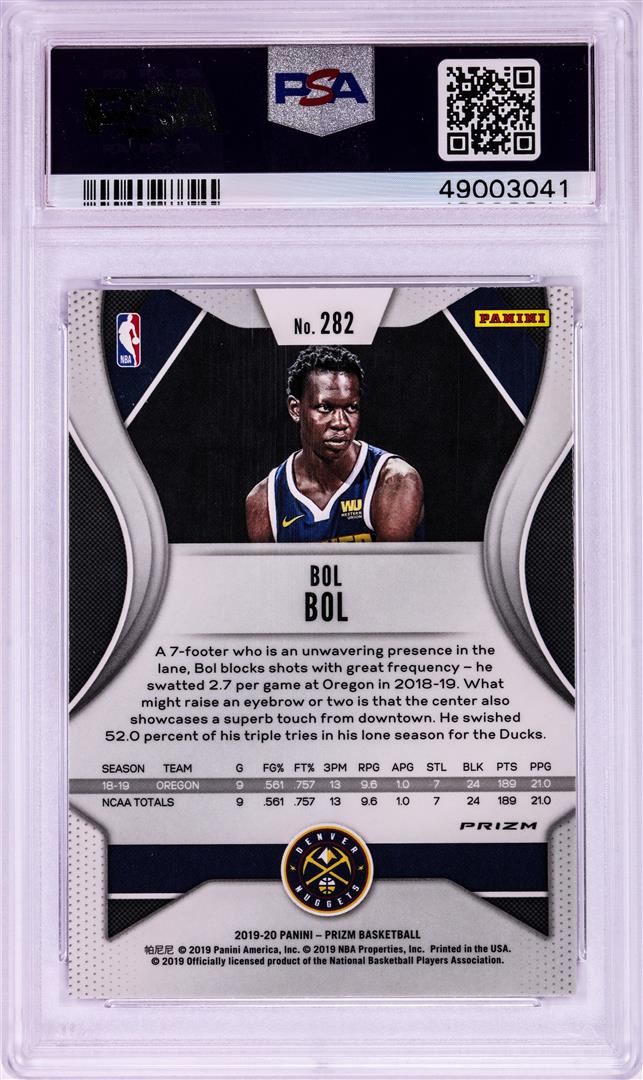 One 2019 Panini Prizm Fast Break Prizm Bol Bol NBA Card #282 PSA Gem Mint 10. PSA Certified.