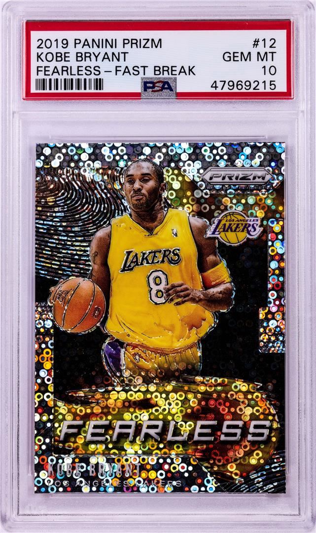 One 2019 Panini Prizm Fearless Fast Break Kobe Bryant NBA Card #12 PSA Gem Mint 10. PSA Certified.
