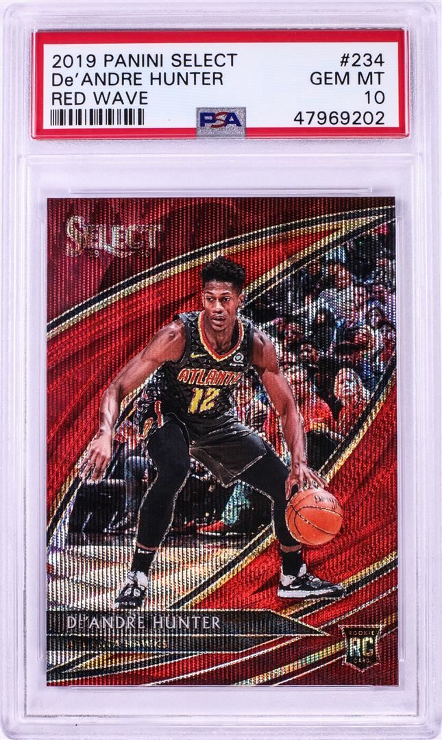 One 2019 Panini Select Red Wave De'Andre Hunter NBA Card #234 PSA Gem Mint 10. PSA Certified.