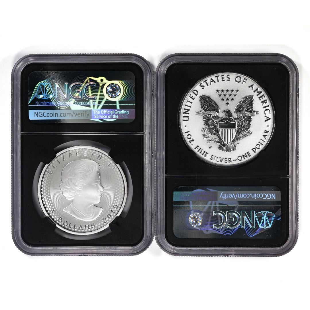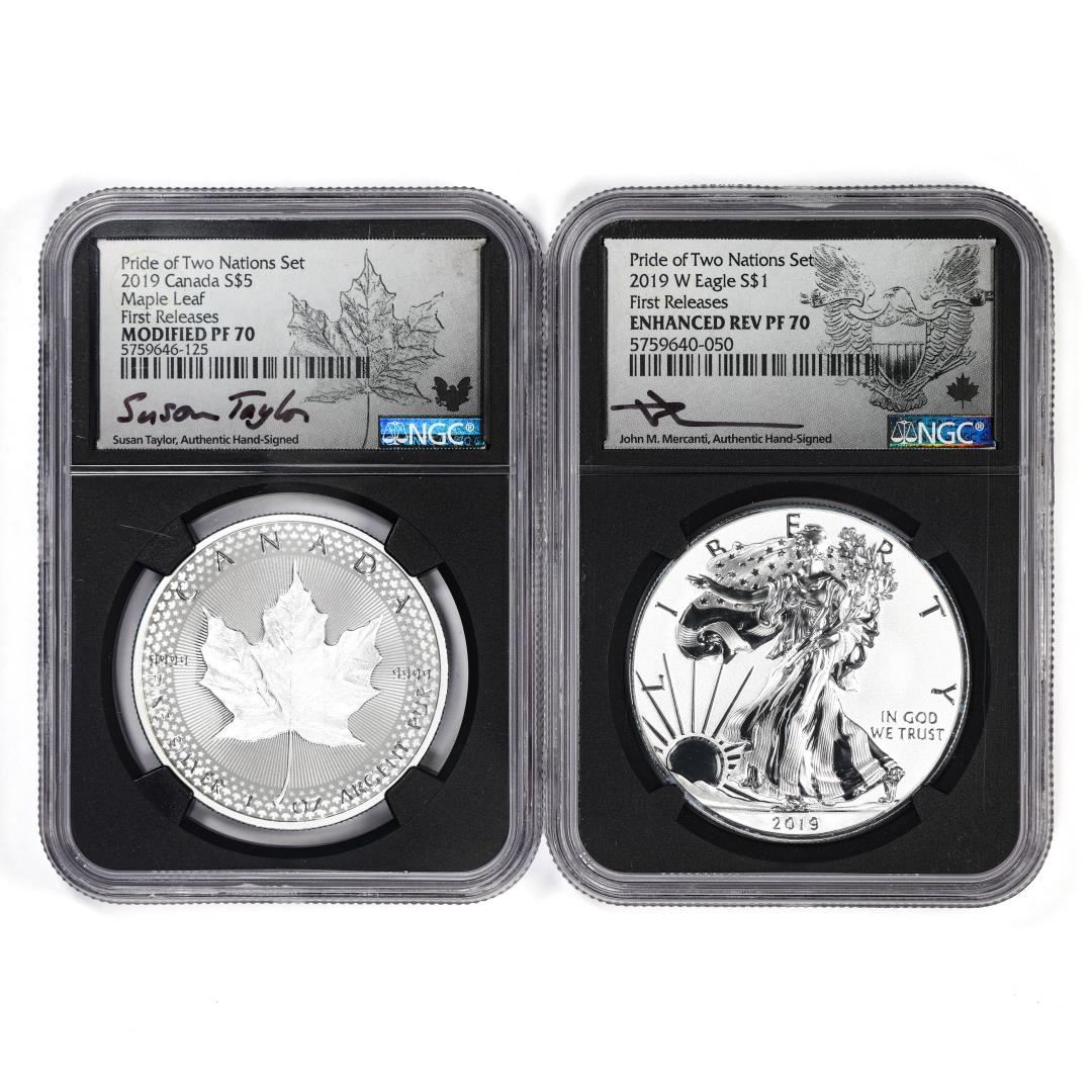 2019 Pride of Two Nations (2) Coin Proof Silver Eagle & Maple Leaf Set NGC PF70/Rev PF70