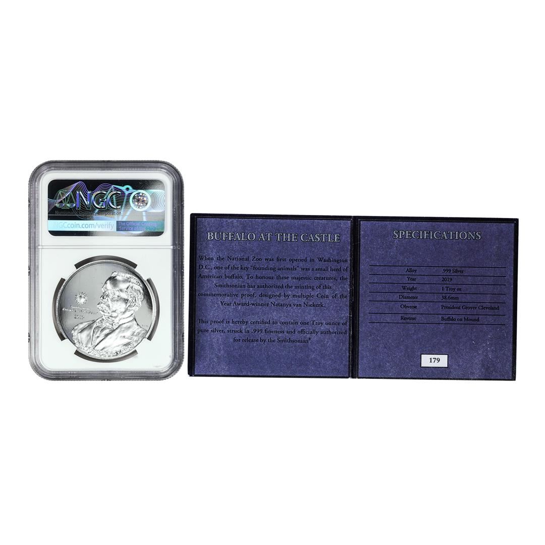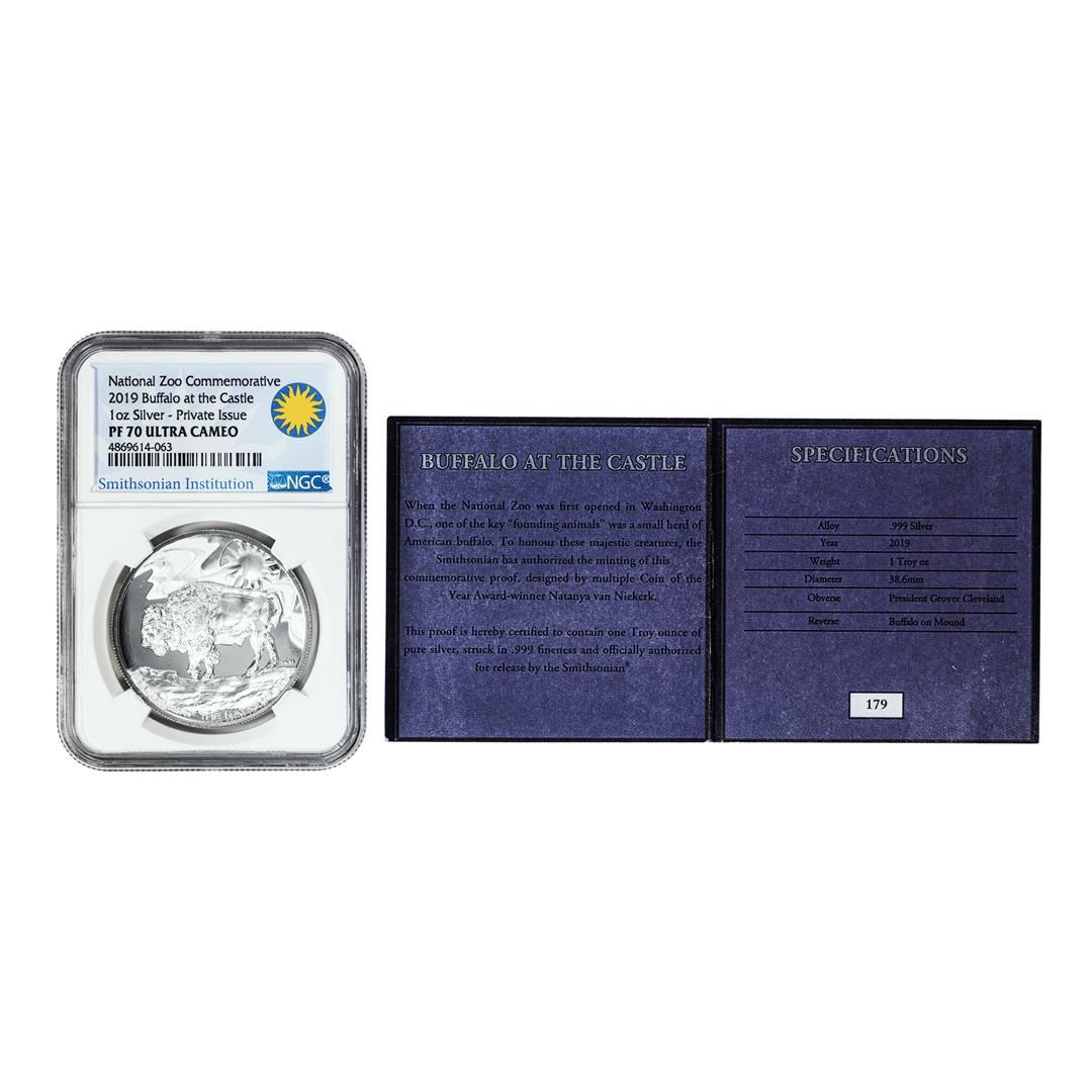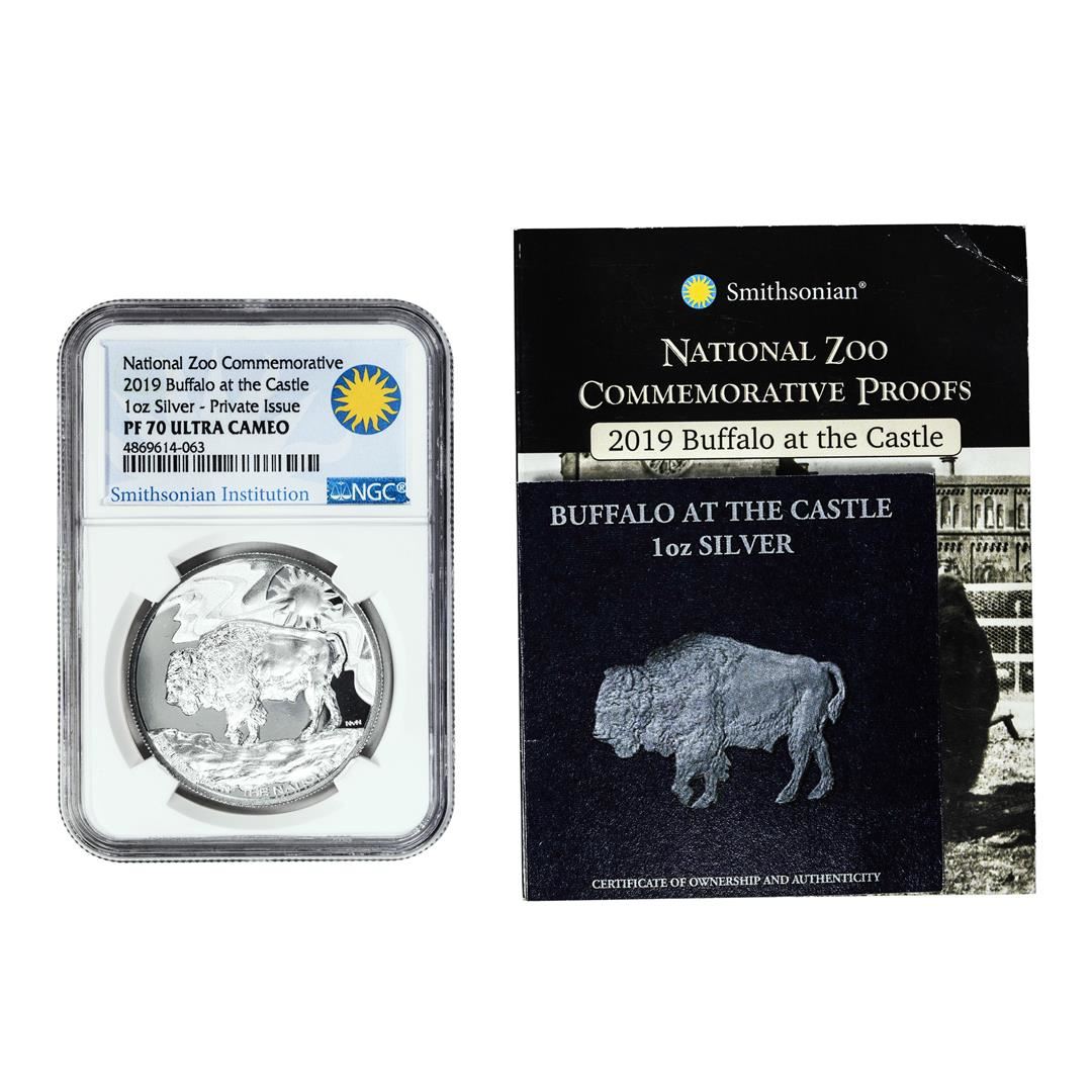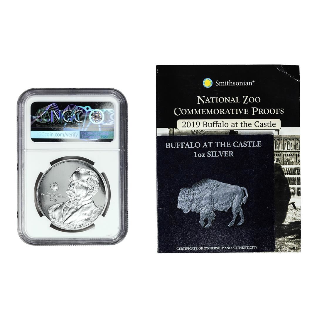 One 2019 Proof Buffalo at Castle Commemorative 1oz Silver Coin NGC PF70 Ultra Cameo w/COA. NGC Certified.