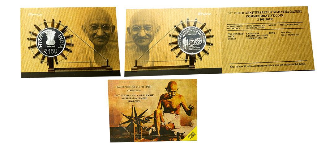 2019 Proof Set, Commemorative of 150th Birth Anniversary of Mahatma Gandhi, Rupees 150. In immaculat