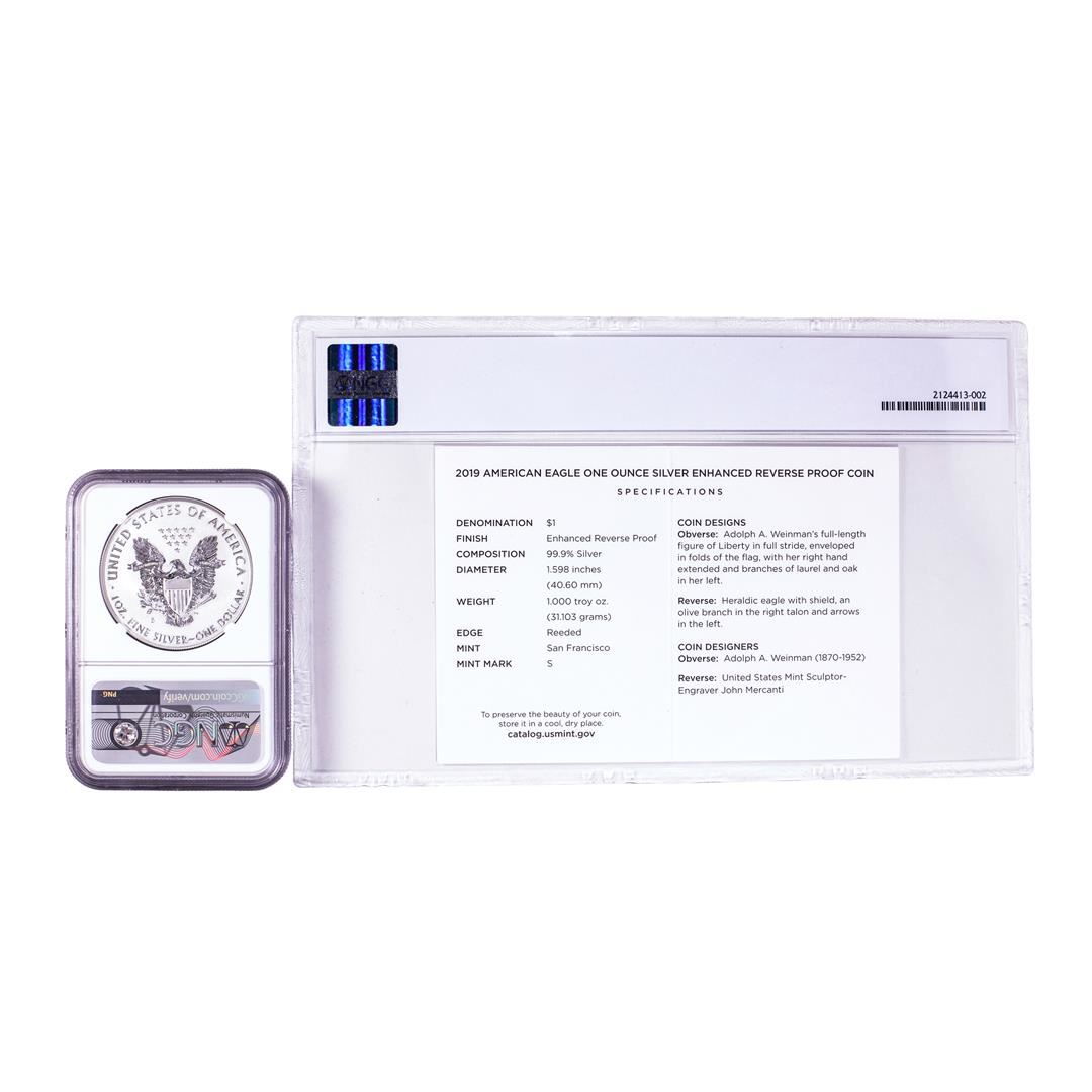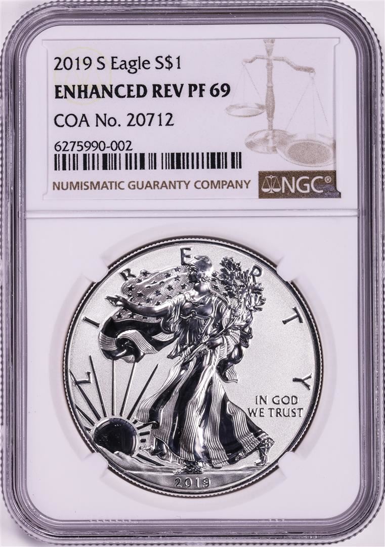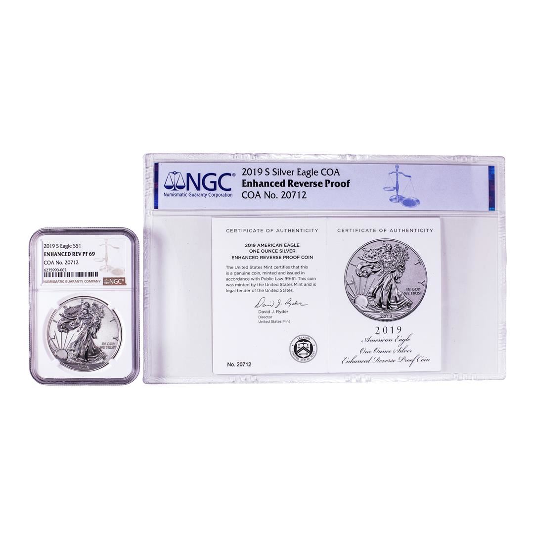 One 2019-S $1 Enhanced Reverse Proof American Silver Eagle Coin NGC PF69 w/ COA. NGC Certified.