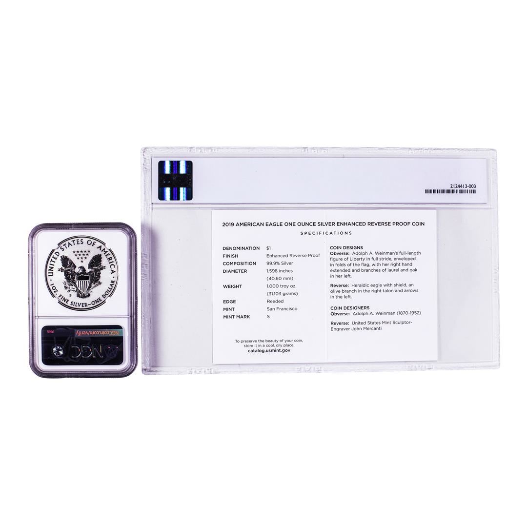 One 2019-S $1 Enhanced Reverse Proof American Silver Eagle Coin NGC PF70 w/ COA. NGC Certified.
