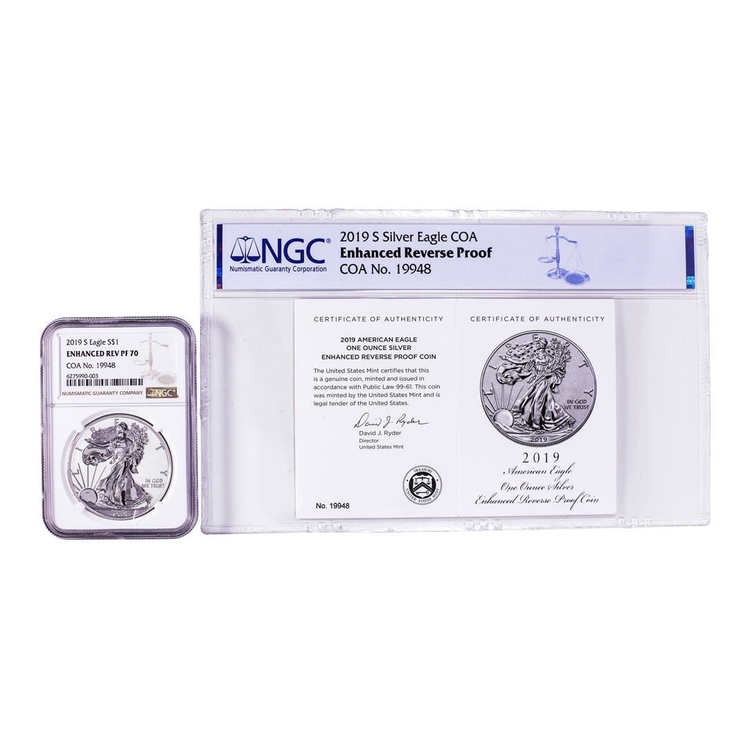 One 2019-S $1 Enhanced Reverse Proof American Silver Eagle Coin NGC PF70 w/ COA. NGC Certified.