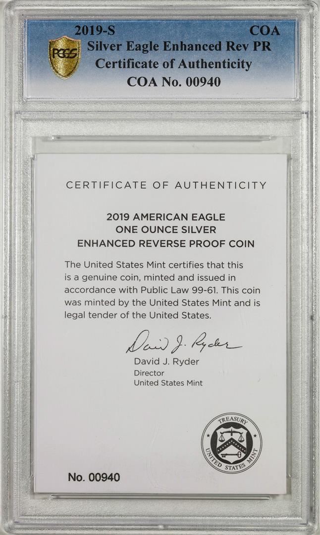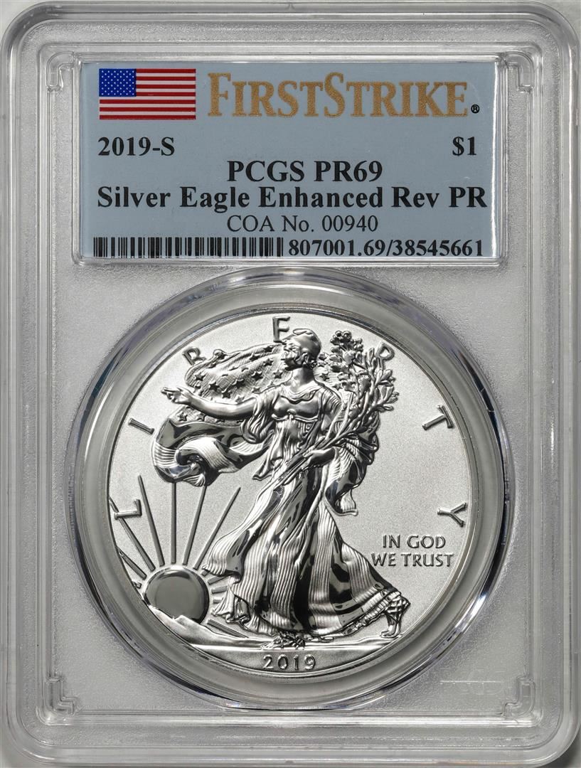 One 2019-S $1 Enhanced Reverse Proof American Silver Eagle Coin NGC PR69 First Strike. NGC Certified.