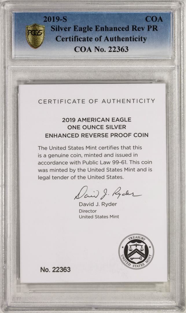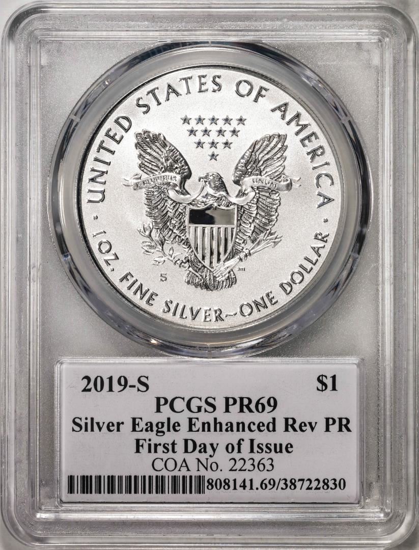 One 2019-S $1 Enhanced Reverse Proof Silver Eagle Coin PCGS PR69 FDOI Balan Signed. PCGS Graded.