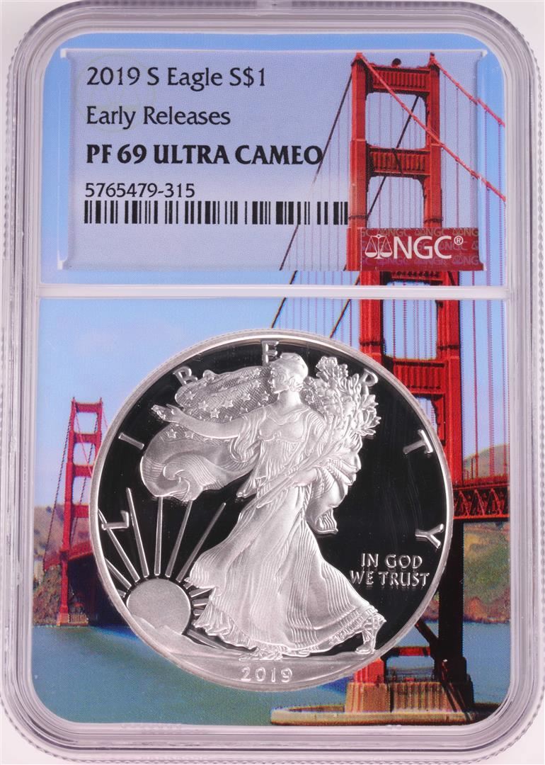 2019-S $1 Proof American Silver Eagle Coin NGC PF69 Ultra Cameo Bridge Core