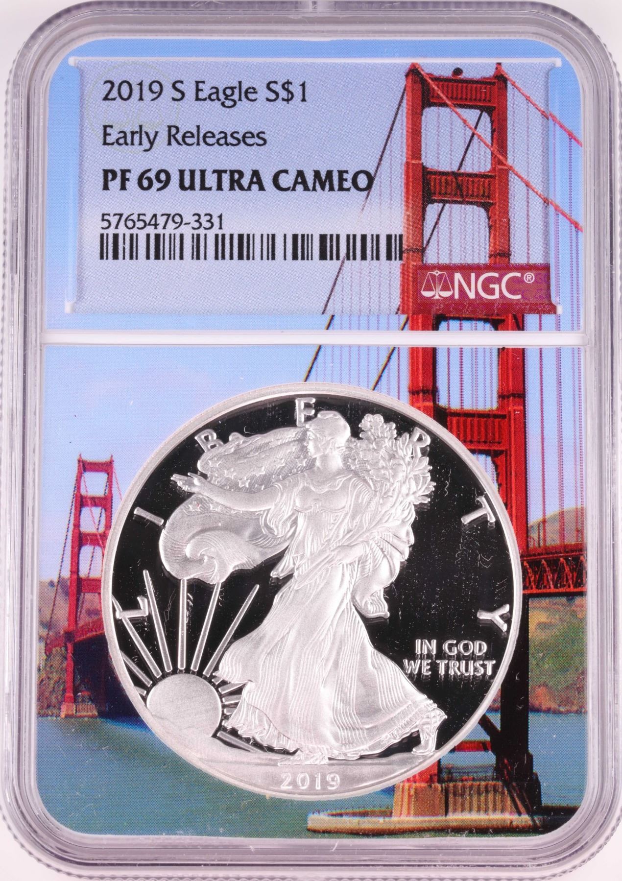 One 2019-S $1 Proof American Silver Eagle Coin NGC PF69 Ultra Cameo Bridge Core.