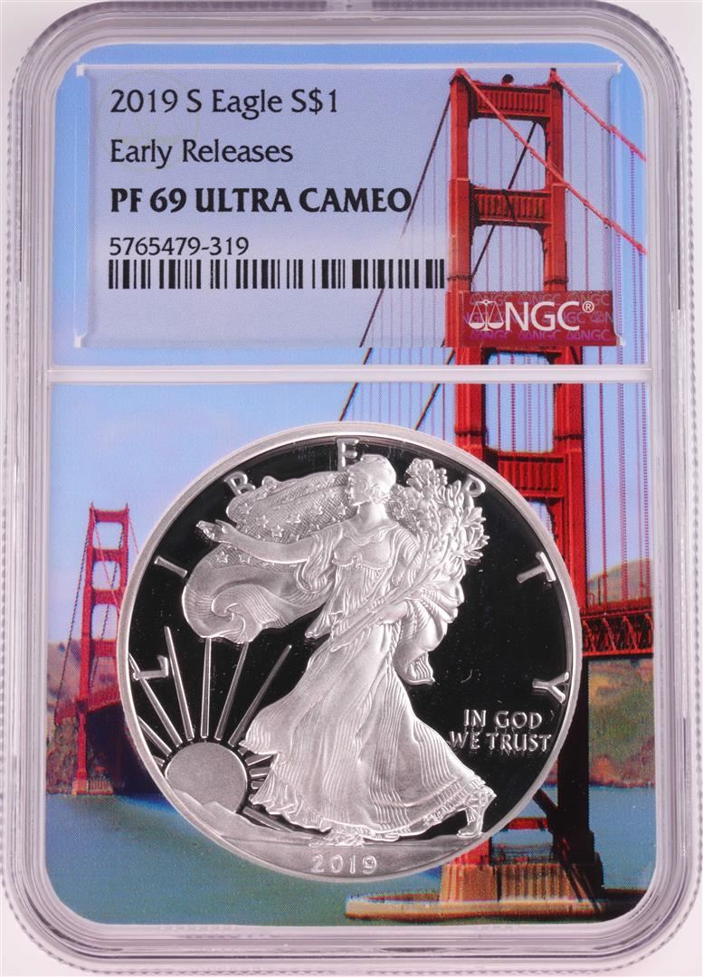 2019-S $1 Proof American Silver Eagle Coin NGC PF69 Ultra Cameo Bridge Core