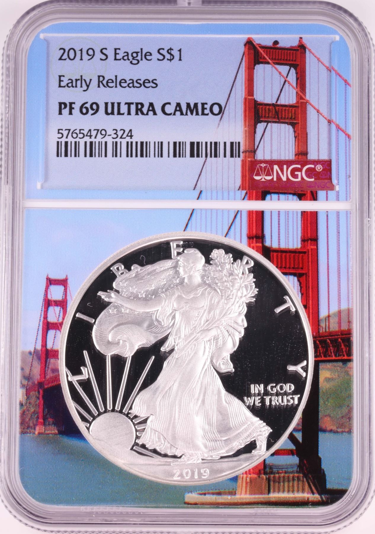 One 2019-S $1 Proof American Silver Eagle Coin NGC PF69 Ultra Cameo Bridge Core.