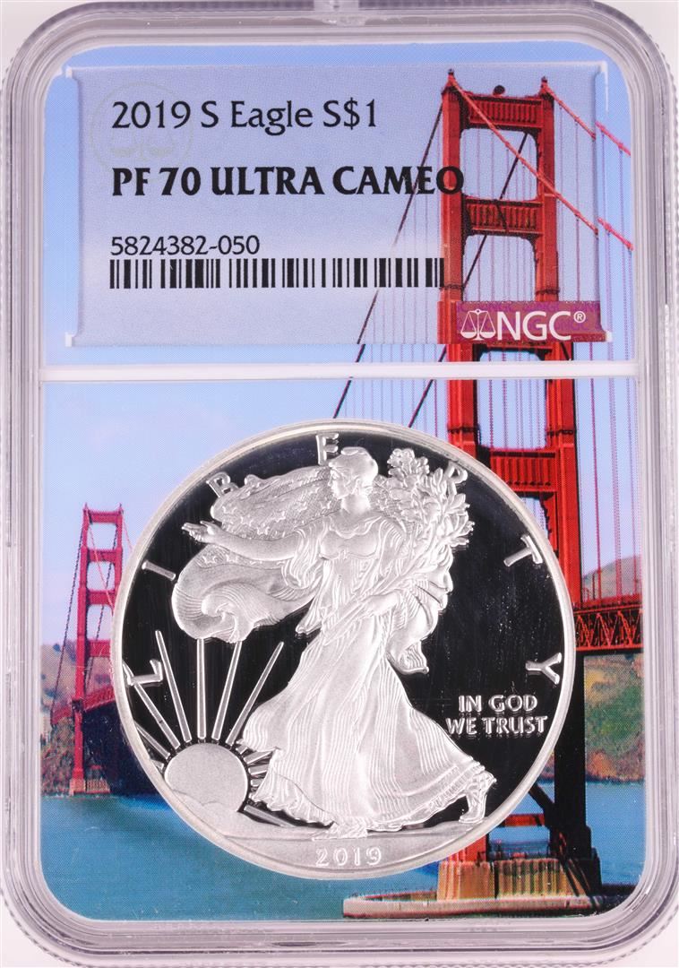 2019-S $1 Proof American Silver Eagle Coin NGC PF70 Ultra Cameo Bridge Core