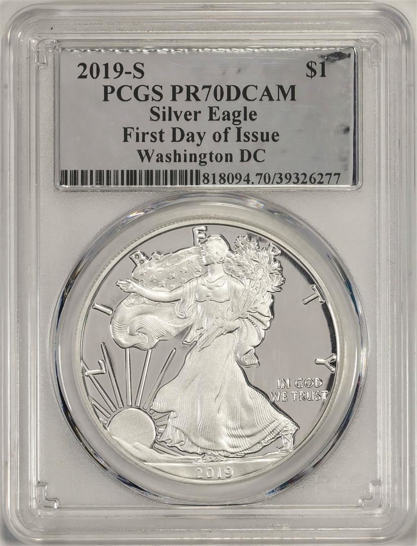 2019-S $1 Proof American Silver Eagle Coin PCGS PR70DCAM FDOI Washington DC