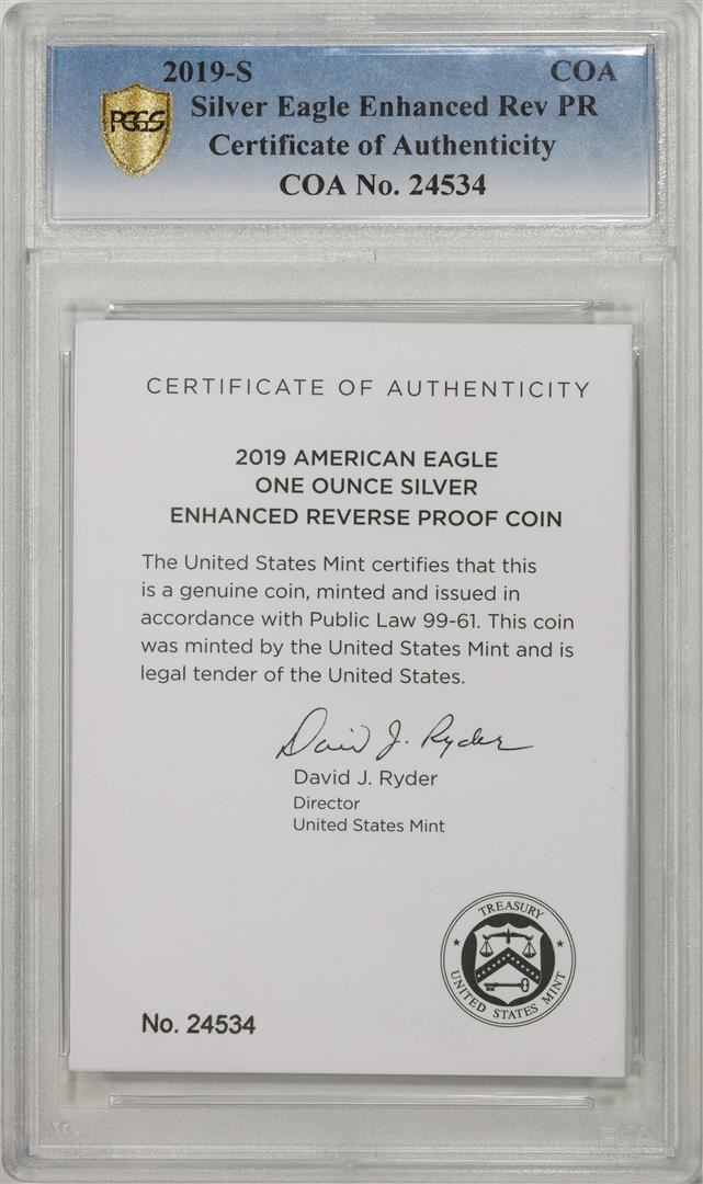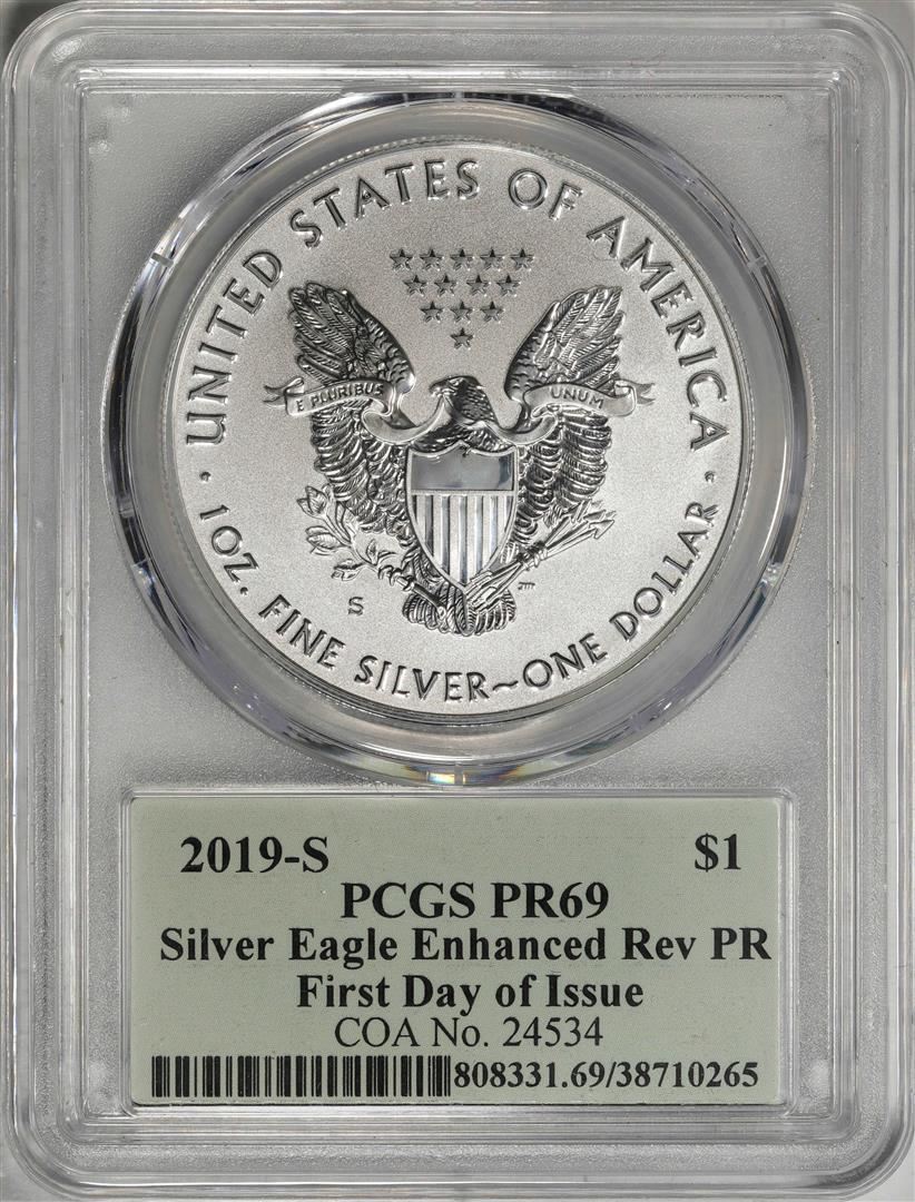 One 2019-S Enhanced Reverse Proof $1 Silver Eagle Coin PCGS PR69 FDOI Cleveland Signature. PCGS Graded.