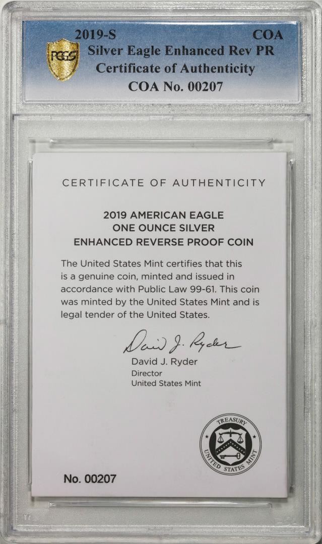 One 2019-S Enhanced Reverse Proof $1 Silver Eagle Coin PCGS PR69 FDOI Cleveland Signature. PCGS Graded.