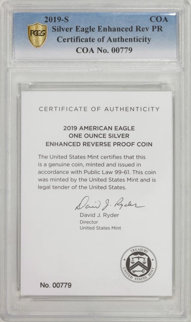 One 2019-S Enhanced Reverse Proof $1 Silver Eagle Coin PCGS PR69 FDOI Cleveland Signature. PCGS Graded.