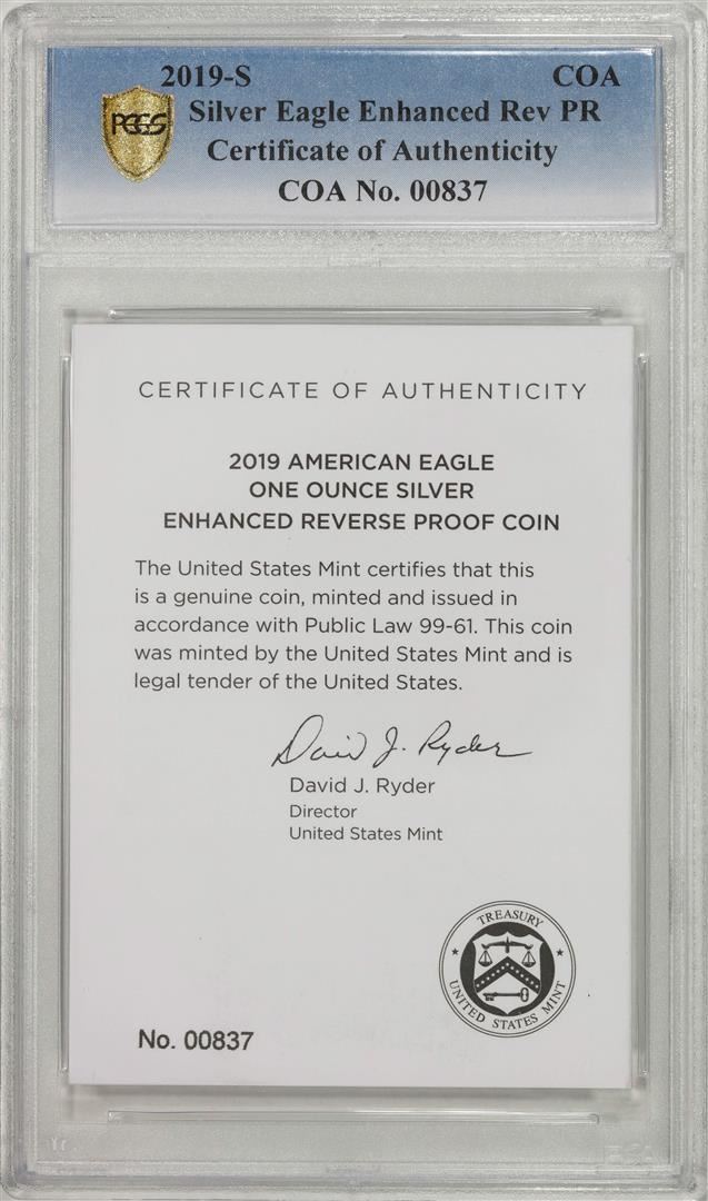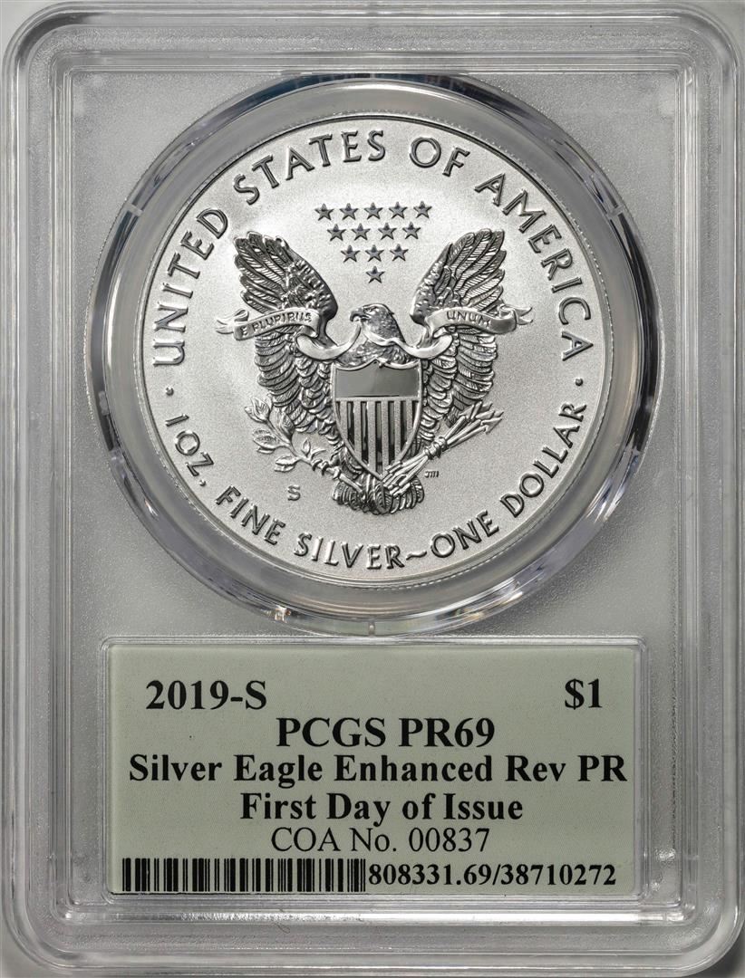 One 2019-S Enhanced Reverse Proof $1 Silver Eagle Coin PCGS PR69 FDOI Cleveland Signature. PCGS Graded.