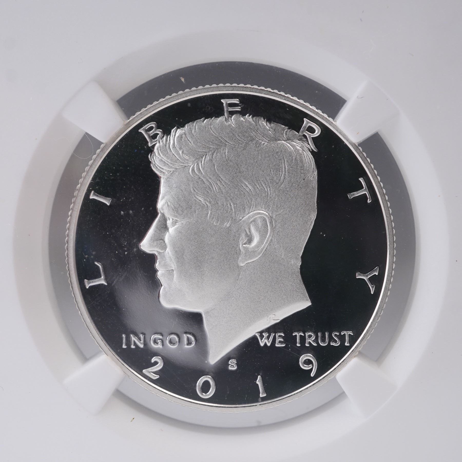 Struck in the first year of issue for the Kennedy half dollar series, this 1964 .999 silver proof coin certified by NGC with a Proof 67 grade. Struck at the San Francisco mint. The obverse bears the inscription IN GOD WE TRUST with the date 1964, surrounding the Kennedy bust. The reverse presents the heraldic eagle in stunning relief, surrounded by fifty stars and framed by the bold UNITED STATES OF AMERICA and HALF DOLLAR legends. Housed in a graded NGC holder for further preservation and authentication. Slab measures: 2.25"L x 0.25"W x 3.25"H. Coin diameter: 30.61 mm.