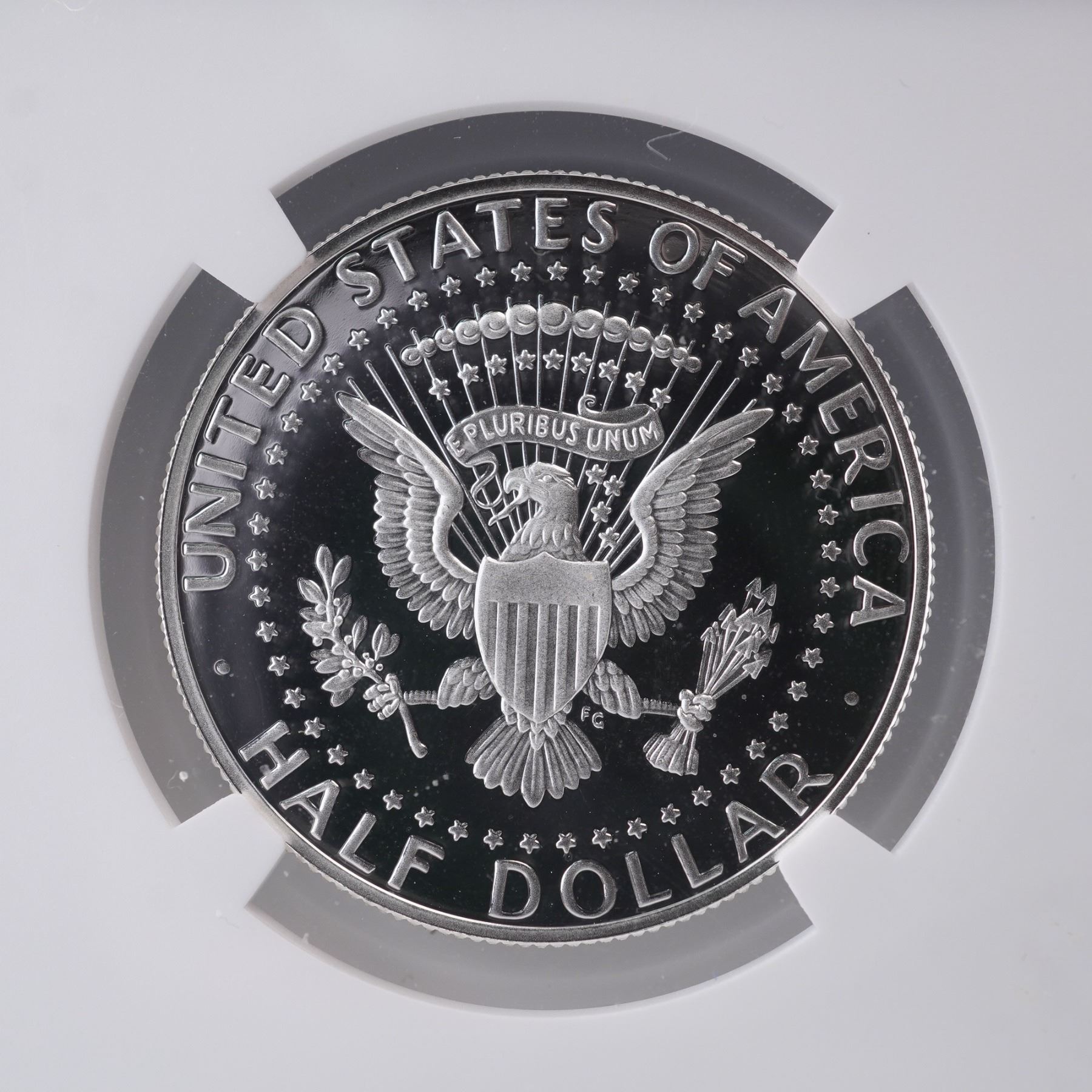 Struck in the first year of issue for the Kennedy half dollar series, this 1964 .999 silver proof coin certified by NGC with a Proof 67 grade. Struck at the San Francisco mint. The obverse bears the inscription IN GOD WE TRUST with the date 1964, surrounding the Kennedy bust. The reverse presents the heraldic eagle in stunning relief, surrounded by fifty stars and framed by the bold UNITED STATES OF AMERICA and HALF DOLLAR legends. Housed in a graded NGC holder for further preservation and authentication. Slab measures: 2.25"L x 0.25"W x 3.25"H. Coin diameter: 30.61 mm.