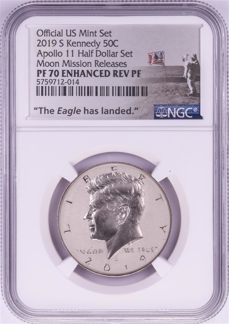 2019-S Proof Kennedy Half Dollar Coin NGC PF70 Enhanced Reverse Apollo Moon Releases