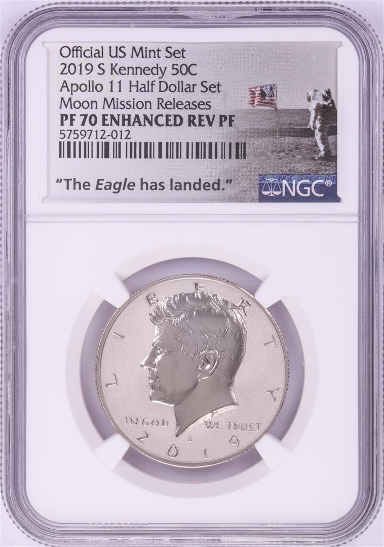2019-S Proof Kennedy Half Dollar Coin NGC PF70 Enhanced Reverse Apollo Moon Releases